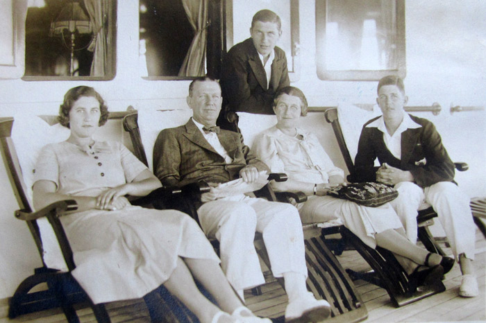 Elaine, John (primer capitán argentino de Copa Davis), Elena y Jack Gibson en viaje a Europa, en barco, en 1923.