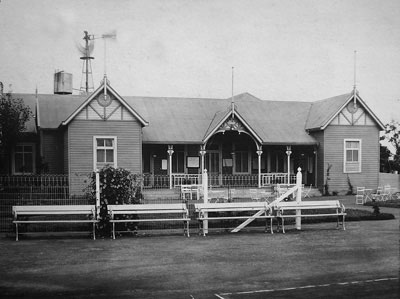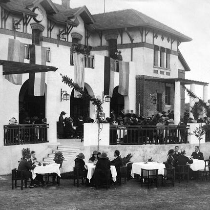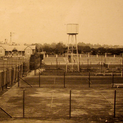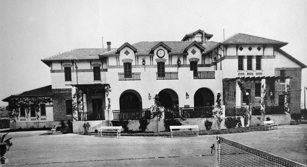 Vista del antiguo Club House de madera. El tanque de agua, se encontraba donde hoy se emplaza el court n°16