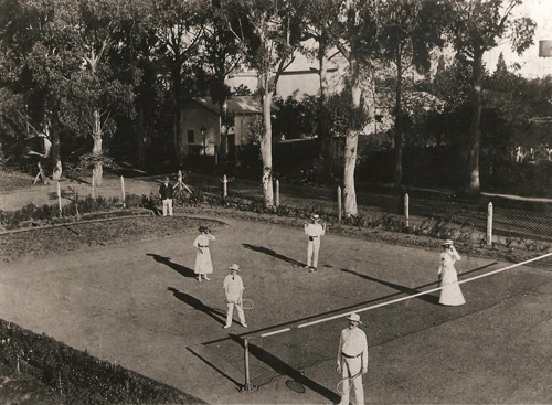 Práctica improvisada del tenis en la Argentina. Primeras canchas de césped en quintas privadas – Hacia comienzos de 1880, amén de los diversos pero escasos focos “tenísticos” anteriores, comenzaron a proliferar asentamientos deportivos permanentes en nuestro país que incluyeron la práctica del lawn tennis patentado. Se observó en lugares improvisados y tímidamente se inició la construcción de canchas, tomando mayor fuerza en el campo de Palermo, en Rosario, en quintas familiares ubicadas en localidades suburbanas -Adrogué, Quilmes, Temperley-, como el caso de la quinta de la familia Henry, que aparece como el antecedente más importante entre los privados.
