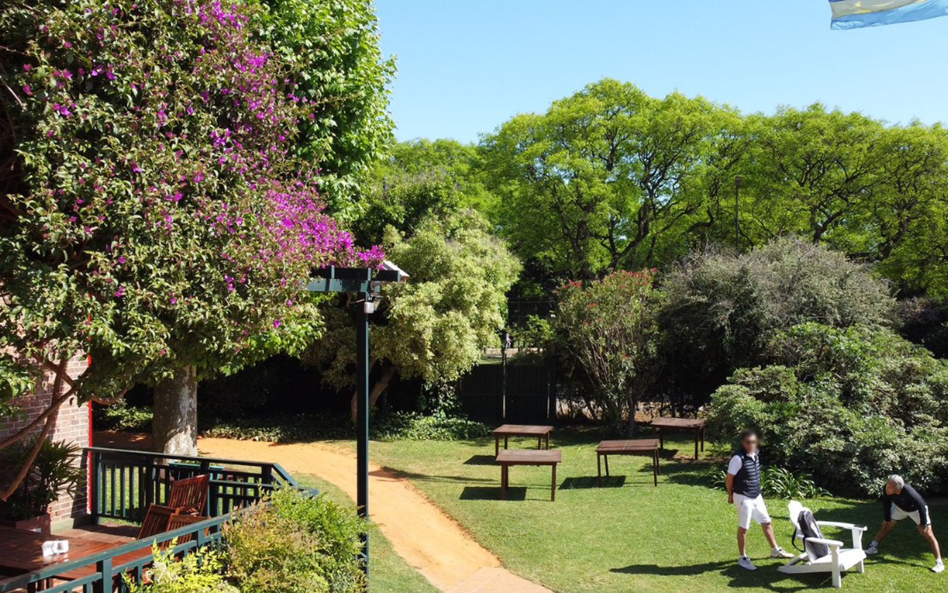 El club se encuentra ubicado en medio de los bosques de Palermo, y cuenta con amplios espacios verdes y arbolados, donde juegan los niños y se relajan los mayores. Es mágica la sensación de saberse en medio de la ciudad y al mismo tiempo no tener a la vista ningún edificio.